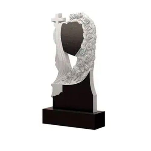 Памятник барельеф «Сердце с розами крестом и вуалью»